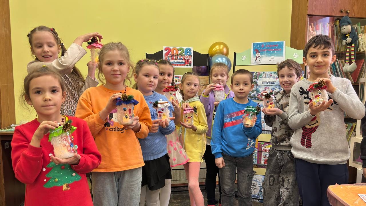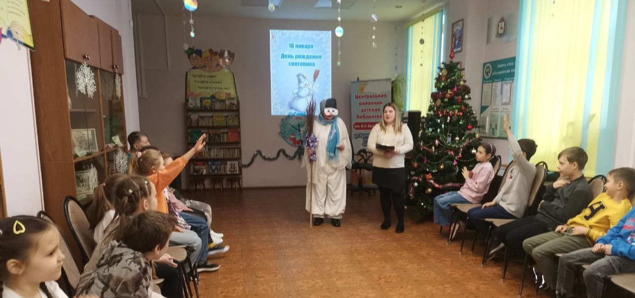 Отметить свой праздник Снеговик решил в библиотеке вместе с дружными веселыми ребятами.