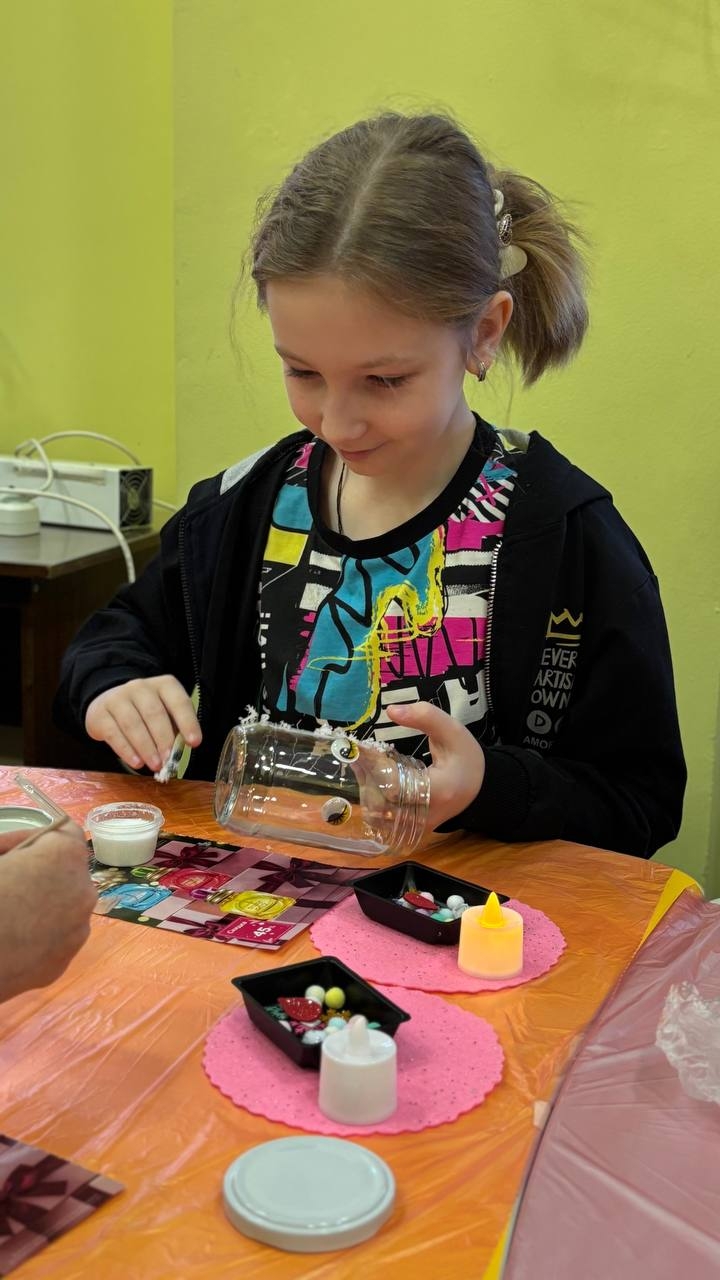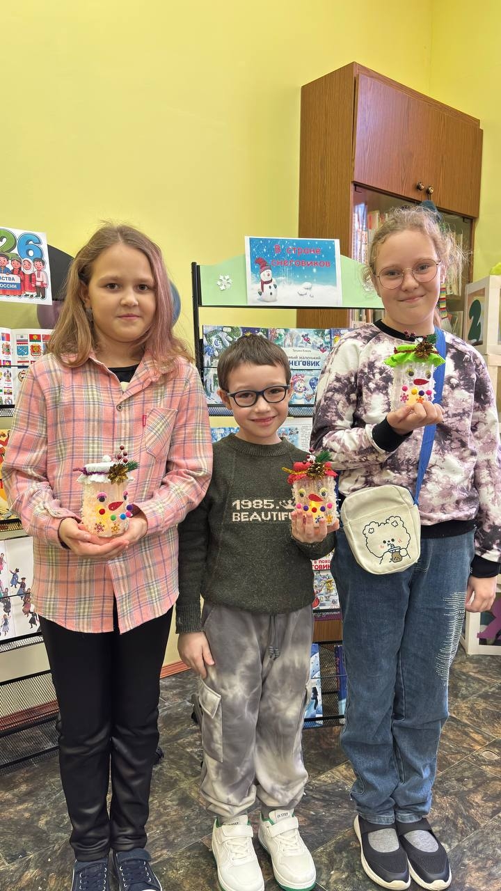 Мальчишки и девчонки своими руками создали необыкновенные светильники в форме снеговика.