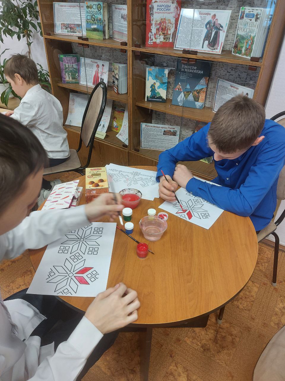а затем приступили к практическому занятию - раскрашивали чувашские национальные узоры.